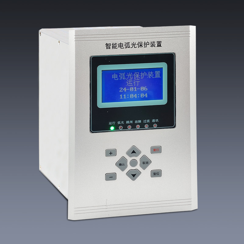 • 弧光保護(hù)裝置是母線型弧光保護(hù)系統(tǒng)的主要核心設(shè)備。主要用來(lái)檢測(cè)分析故障信號(hào)、接收分析采集單元的弧光故障信號(hào),并對(duì)兩種信號(hào)進(jìn)行綜合分析判斷。在滿足跳閘條件時(shí),發(fā)出跳閘指令以切除故障。安裝于進(jìn)線柜或緊鄰進(jìn)線柜的開(kāi)關(guān)柜的二次控制門(mén)板上。